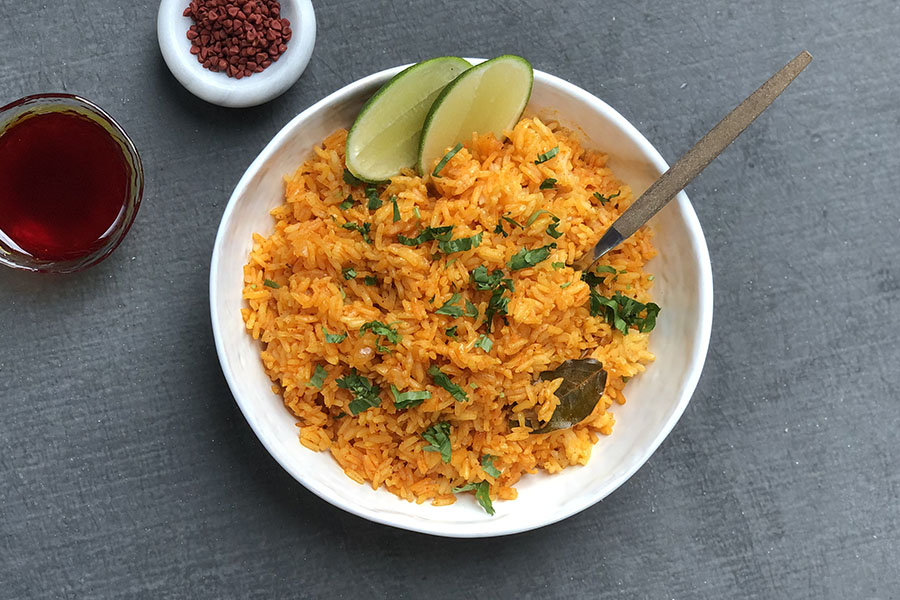 Caribbean rice dish is made with rice, a legume (usually red kidney beans or pigeon peas), and coconut milk, infused with various spices.