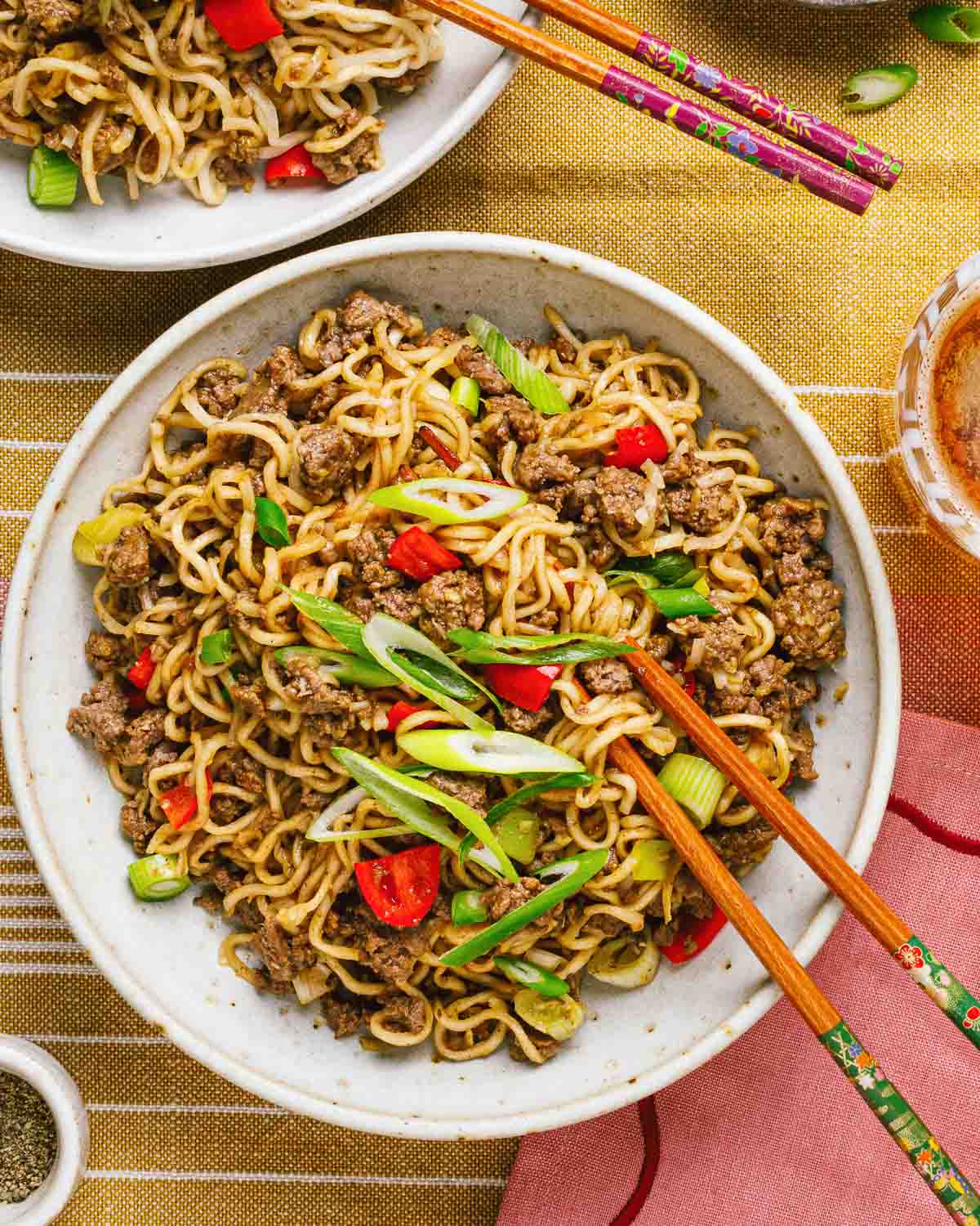 Authentic Taiwanese flavor of Mongolian Ground Beef Noodles. Loaded with garlic, ginger, scallions